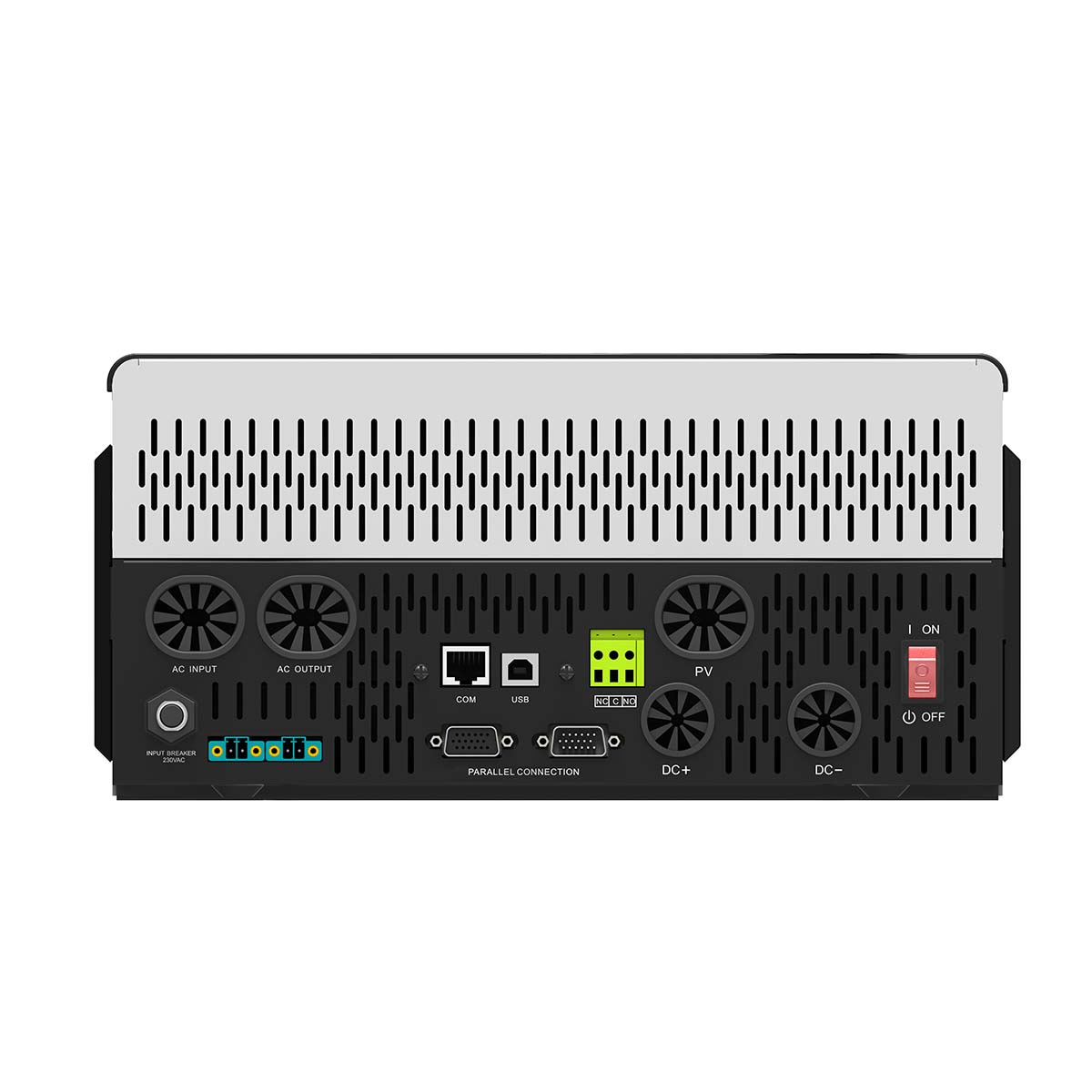 Гибридный солнечный инвертор MUST PV18-6048 PRO II (PF 1.0) для дома и дачи это многофункциональный инвертор/зарядное устройство мощностью 6 кВт ( кратковременно 12 кВт ) в котором сочетаются функции инвертора, контроллера заряда аккумуляторов от солнечных батарей и зарядного устройства аккумуляторных батарей от сети 220В ( или генератора ) для обеспечения бесперебойной подачи питания, с возможностью выбора приоритетов зарядки и нагрузки. Используется в солнечных электростанциях и системах бесперебойного питания.